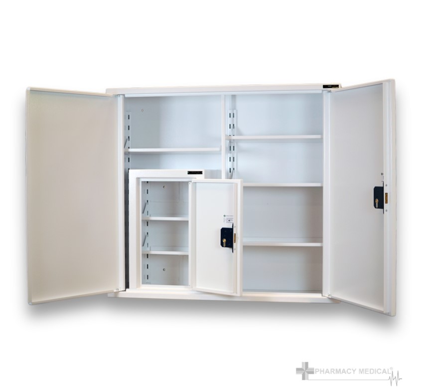Below is a our entire selection of medication storage broken down into medication storage boxes by subcategory. To complement our extensive stock range of controlled drug cabinets we provide a bespoke service too. You may also convert one cabinet row to a locked narcotics storage box or convert the cabinet to open from the opposite side. 15.6w x 15.4h x 6.5d. Staff stocked the cabinets with patients' routine medications and supplies to administer them.